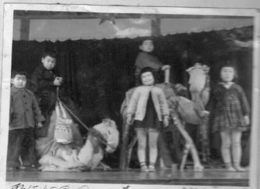![]() 終戦後の父と幼い姉と、仕事仲間達の人達と、アメリカ軍の人の子供達です。 |